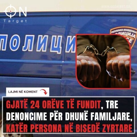 “Më 18.04.2026 në ora 00:40 në Shkup, nëpunës policorë nga SPB Shkup e kanë privuar nga liria M.P. (44) nga Shkupi, duke vepruar sipas kallëzimit paraprak se më 16.04.2026 rreth orës 19:30 në zonën e Karposhit, ajo i kishte bërë kërcënime ish-bashkëshortit të saj 64-vjeçar dhe fëmijëve të tyre. Sipas kallëzimit, ai kishte qenë për një periudhë të gjatë viktimë e dhunës psikike dhe fizike nga ana e saj. Gjatë kontrollit tek ajo është gjetur dhe sekuestruar substancë pluhurore e bardhë”.