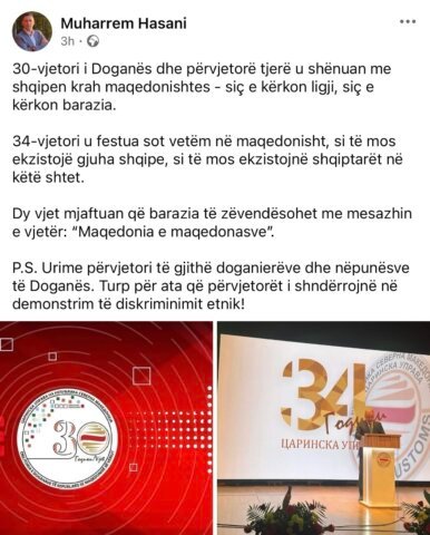 Në fund të reagimit të tij, ai ka uruar punonjësit e Doganës për përvjetorin, por njëkohësisht ka shprehur kritika të forta për, siç tha ai, trajtimin e pabarabartë të gjuhës shqipe në këtë ngjarje zyrtare.