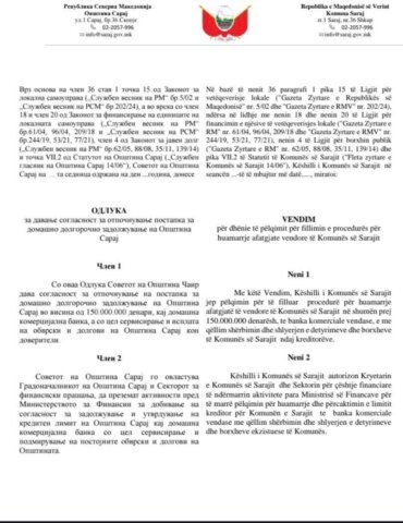 Komuna e Sarajit po përballet me pikëpyetje serioze rreth gjendjes së saj financiare, pasi dokumente zyrtare tregojnë se është inicuar procedura për një huamarrje afatgjate prej 150 milionë denarësh nga një bankë komerciale vendore.