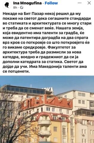 Postimi që po shpërndahet me mijëra reagime e përshkruan me ironi këtë “krijimtari arkitekturore”, ku një çati është shndërruar në kantier ndërtimi, me tulla, beton dhe ballkone të improvizuara. Por pas humorit fshihet një e vërtetë e frikshme: ky ndërtim është i paligjshëm dhe mund të rrezikojë jetën e dhjetëra familjeve.