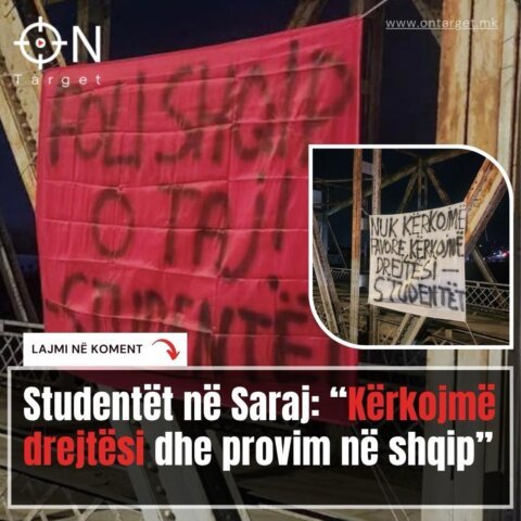 “Nuk kërkojmë favore, kërkojmë drejtësi” dhe “Foli Shqip o taj”, sonte në Saraj janë shfaqur pankarta nga studentët me mesazhe të qarta kundër asaj që ata e cilësojnë si padrejtësi institucionale. Me këto slogane, ata kanë ngritur zërin lidhur me moslejimin e plotë të përdorimit të gjuhës shqipe në provimin e jurisprudencës.