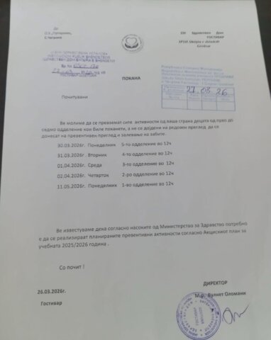Është e papranueshme që në Shtëpinë e Shëndetit në Gostivar njoftimet dhe thirrjet për pacientët të bëhen vetëm në gjuhën maqedonase, ndërkohë që ky institucion udhëhiqet nga Vulnet Olomani, i përfaqësuar nga kuadro të VLEN.